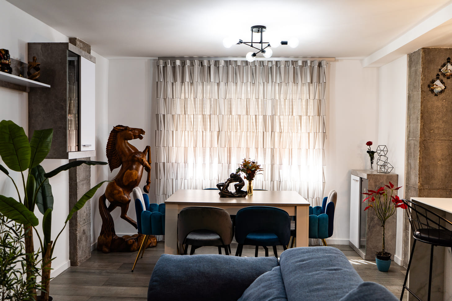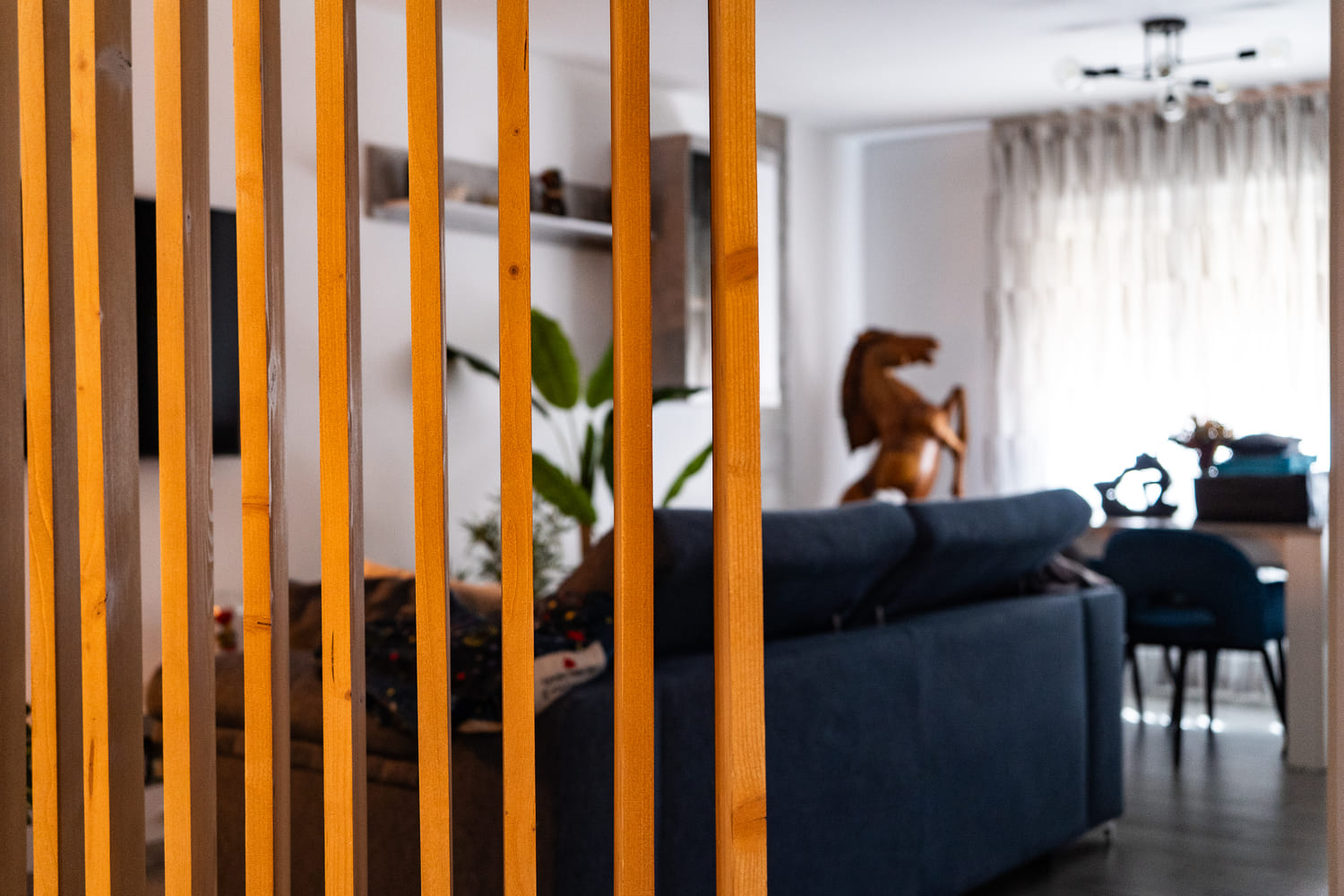 Uno de los aspectos más destacados de esta reforma ha sido la redistribución completa de la vivienda. Realizamos aperturas estratégicas entre estancias para crear un concepto de espacio abierto, reubicando la cocina en una zona diáfana integrada con el comedor. Esta solución ha aportado amplitud visual y ha mejorado notablemente la funcionalidad del hogar.